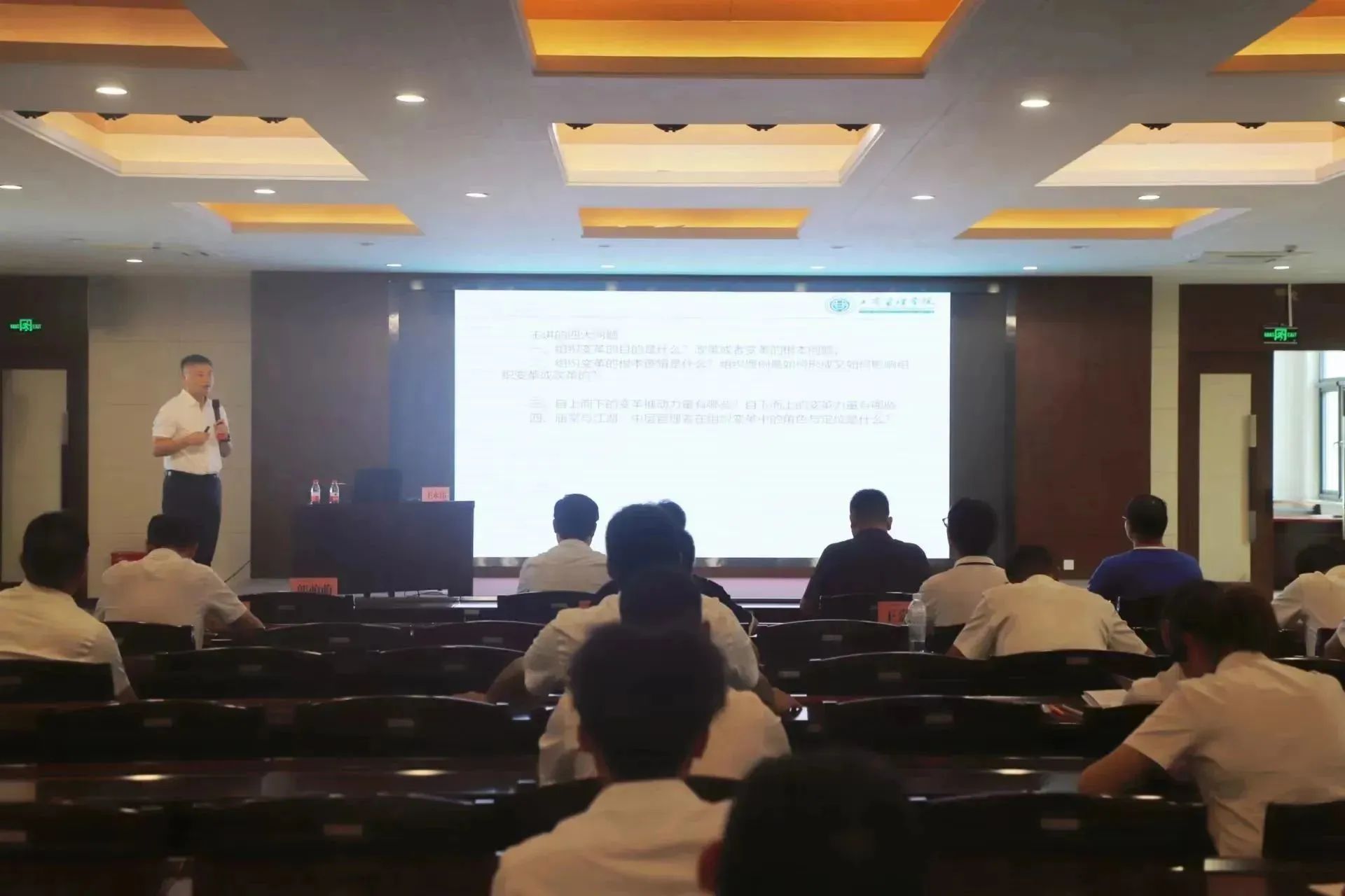 王永伟受邀对郑州市污水净化有限公司各污水处理厂主要管理干部60余人进行管理学专题讲座培训。讲座上,王永伟以中层管理者在组织变革中的角色与定位为切入点,系统地阐述了改革与变革的关系、个体与组织惯例和行业惯例的演化关系、中层管理者的领导风格及应具备的能力,结合三一重工、亚朵酒店以及手机行业的演化规律,详细介绍了组织惯例在变革中的地位和作用,并结合战略领导力整合自上而下和自下而上的组织惯例更新机制,为与会管理干部做了一场生动的汇报,得到了大家的一致认可和好评。
