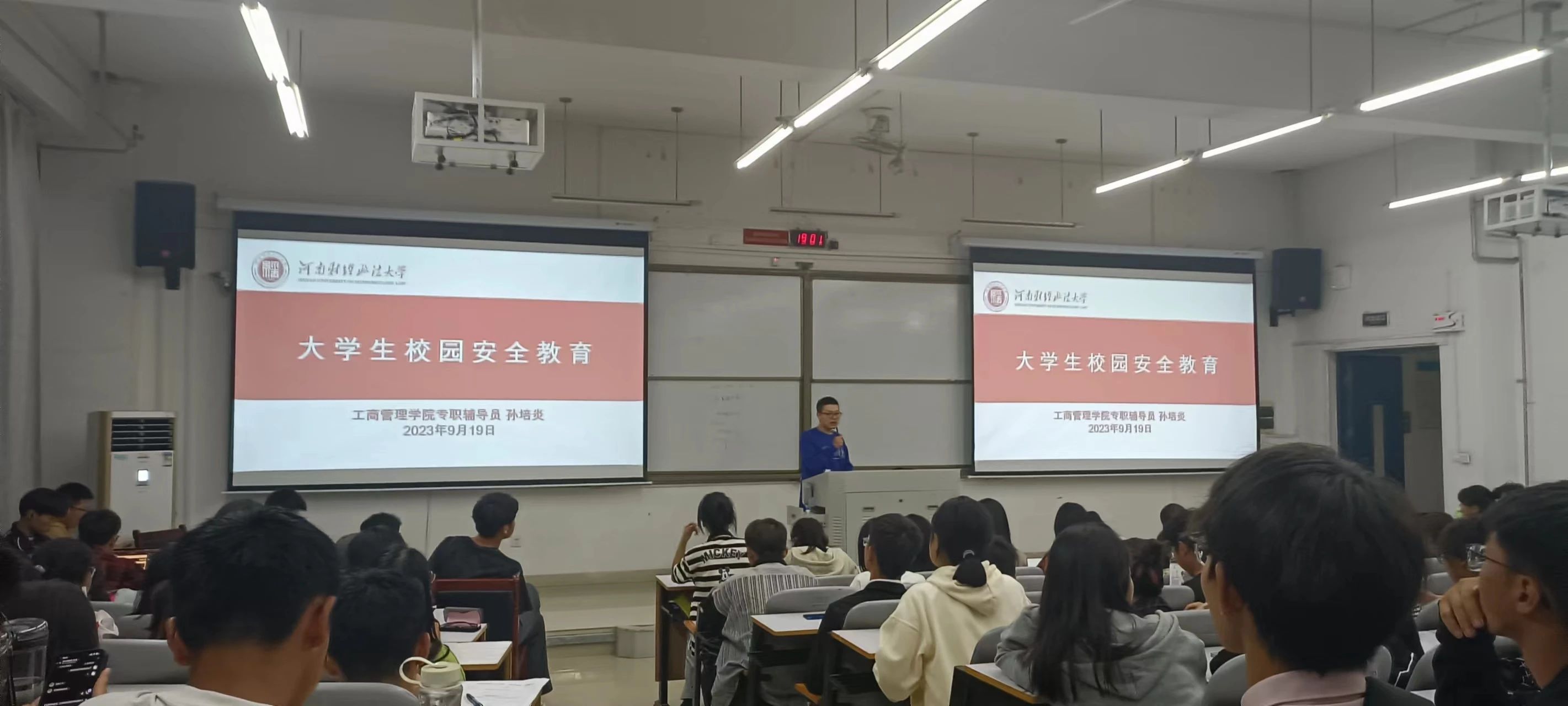 为加强学生安全防范意识,提高学生自救能力,9月19日晚,我院在教一215教室召开2023级新生校园安全教育主题班会。会议由辅导员孙培炎主持,2023级全体新生与会聆听。