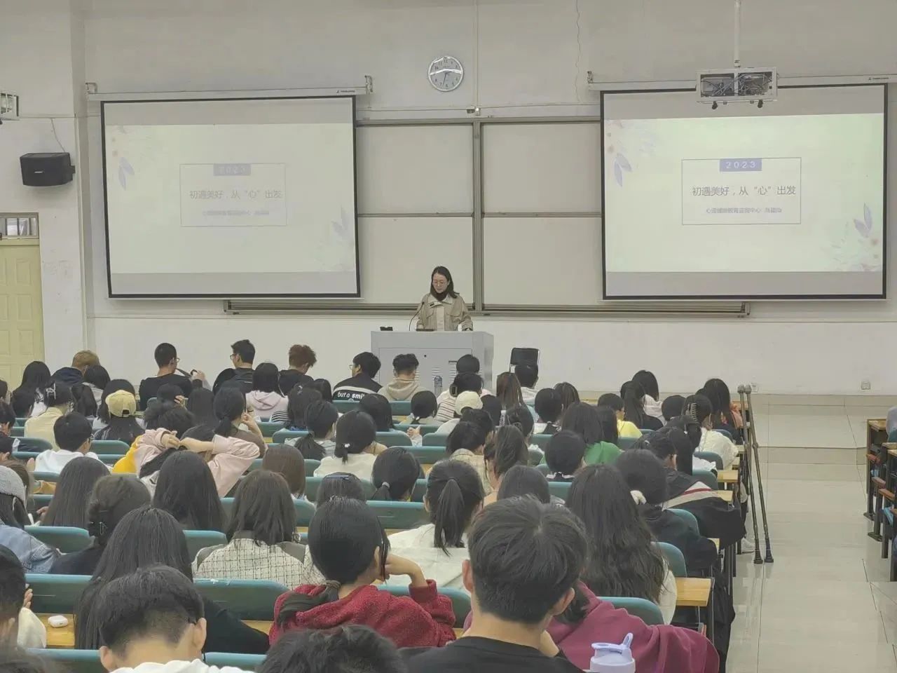 10月23日下午,我院在教科楼B208教室举办“初遇美好,从心开始”心理健康教育讲座,校大学生心理健康教育咨询中心赵崔灿博士主讲,我院心理辅导站站长郭萌萌、新生辅导员孙培炎参加,2023级新生到场聆听。