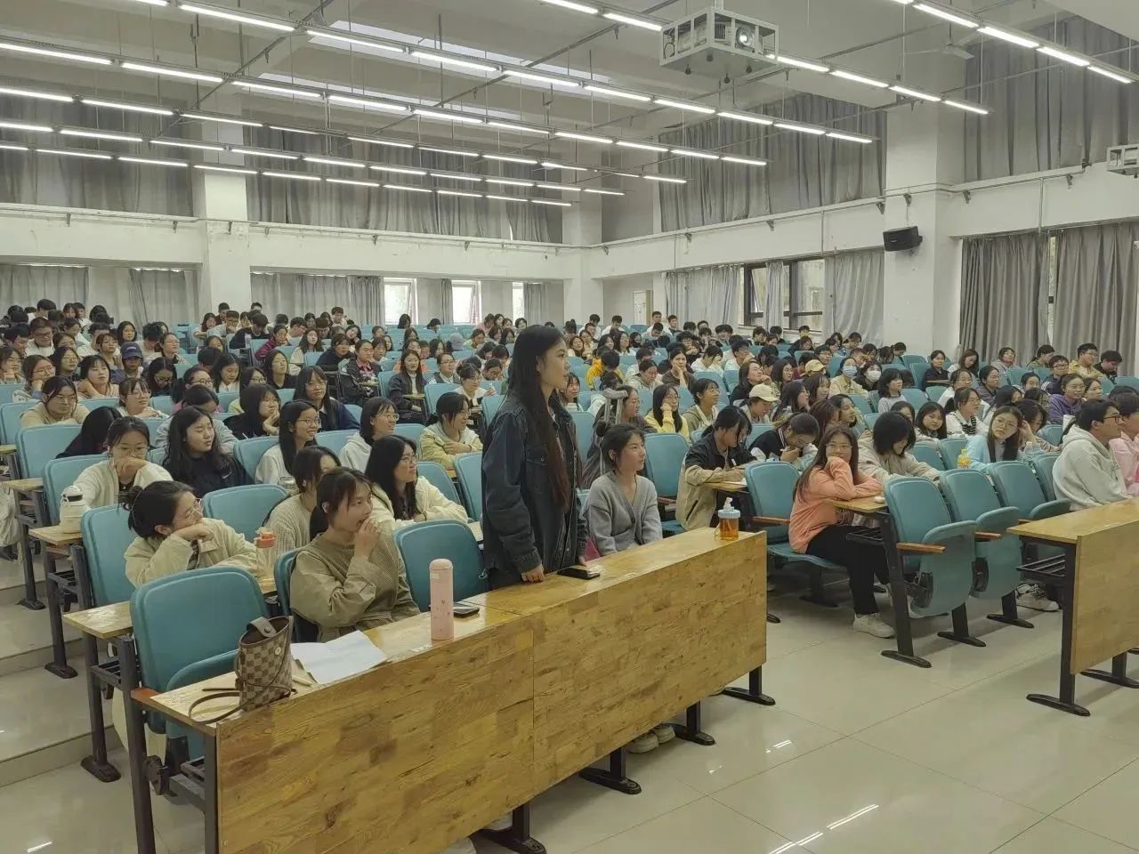 赵崔灿从高中和大学的区别是什么、大学我们到底该做些什么、爱自己是我们一生的功课、在未来会遇到更好的自己四个方面展开讲解,向同学们阐述自己对大学生活的理解,鼓励大家在大学这个全新的跑道上主动起跑,学会适度自信,让自己处在最好的状态。她结合自身经历分享对待情感、成绩、人际关系的态度,告诉同学们要认同学校、认同身份、认同环境。就日常学习生活中常见的心理问题,她从心理、认知、行动三个层面进行分享,指导同学们认识自我,学会自我疗愈和求助。会上,赵崔灿与在场学生积极互动,探讨有趣的话题,带领学生打破迷茫心境。