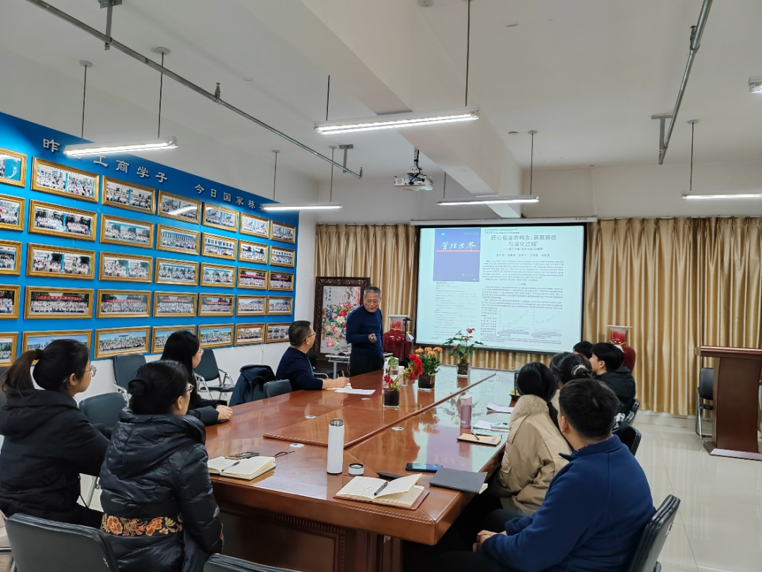 12月21日,河北经贸大学二级教授,河北传媒学院信息技术与文化管理学院院长郭会斌教授应邀来我院进行学术交流。报告会在郑东校区教科楼B771会议室举行,我院部分老师和研究生参加了报告会。郭会斌教授学术报告会的题目为:不同的研究范式何以通约?——以《匠心租金的构念、获取路径与演化过程》为例。